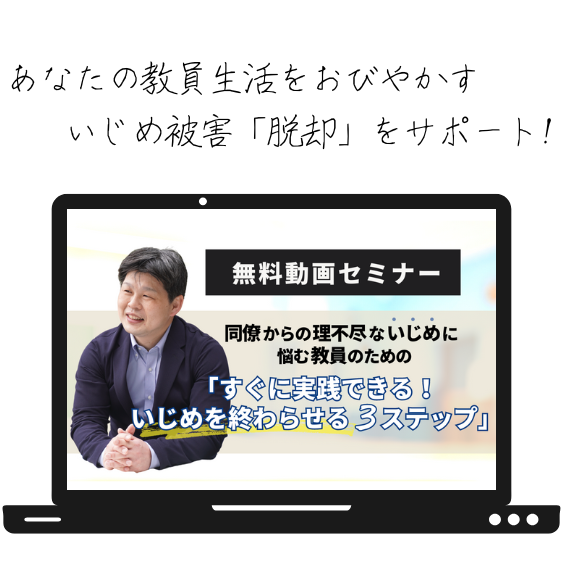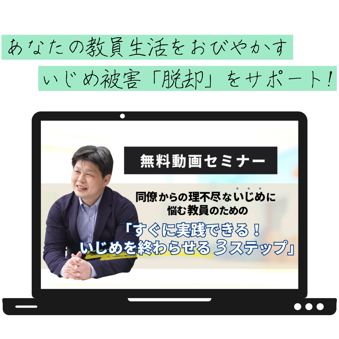【同僚からの理不尽ないじめに悩む教員のための「すぐに実践できる!」いじめを終わらせる3ステップ】では、いじめ問題から解放される秘訣を分かりやすく解説してます。